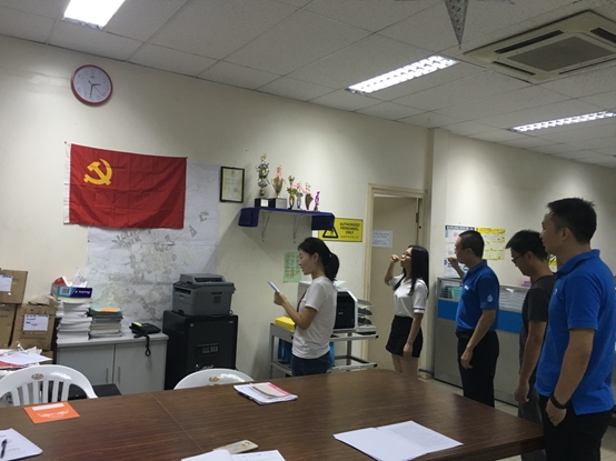 在南太島國(guó)巴布亞新幾內(nèi)亞,支部黨員們面對(duì)黨旗,重溫入黨誓詞。黨支部書記唐東海同志傳達(dá)了公司黨委文件,明確黨建工作任務(wù);帶領(lǐng)大家集體學(xué)習(xí)了巴新使館黨委對(duì)海外支部建設(shè)要求,動(dòng)員黨員廣泛參與,發(fā)揮團(tuán)隊(duì)力量;回顧學(xué)習(xí)了黨的光榮歷史,激勵(lì)大家堅(jiān)定理想,勇當(dāng)尖兵,在平凡的崗位上做出不平凡的業(yè)績(jī)。