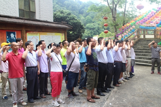 2017年6月29日在龍王潭紅軍戰(zhàn)士紀(jì)念碑前,韶關(guān)黨支部書記張群同志帶領(lǐng)支部黨員同志重溫了入黨誓言,再一次銘記入黨初心。龍王潭是紅軍革命戰(zhàn)區(qū),1934年10月,紅軍展開第五次反圍剿,二萬(wàn)五千里長(zhǎng)征開始。11月5日至7日,紅軍到達(dá)樂(lè)昌五山、九峰一帶,紅軍長(zhǎng)征經(jīng)過(guò)樂(lè)昌留下了許多革命文物及可歌可泣的英雄戰(zhàn)歌。
