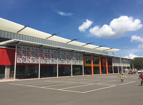 大家為贏得比賽,克服重重困難,巴新大部分本地員工都是虔誠的基督教教徒,每個(gè)周日都要去教堂禱告。我們種子選手Eleanor Kihou參加禱告的教堂沒有直達(dá)體院館的公交車,參賽會造成延誤。于是,我們開著皮卡去接她,帶著坐在車斗的另外一名員工與她的兩個(gè)小孩(考慮安全問題以及當(dāng)?shù)厝说纳盍?xí)慣,員工一般選擇坐在車斗上),剛出門幾分鐘,突然下起雨來,透過玻璃窗,看著冒著風(fēng)雨的母子三人,媽媽拿著紙皮擋著孩子,孩子臉上卻洋溢著天真爛漫的笑容。這一刻,我的心里有感動,有同情,我們將車停在路邊,把熱土豆和傘遞給她們,生怕她們淋出病來。由于我們平時(shí)出門少,不熟悉路況,遲遲找不到Eleanor Kihou,打了一遍又一遍的電話,確認(rèn)了一遍又一遍的地標(biāo),最后我們終于成功會師,仿佛看到了她,就看到了今天比賽的勝利。我們加快速度趕往體院館,到達(dá)會場,選手正在確定首發(fā)陣容。