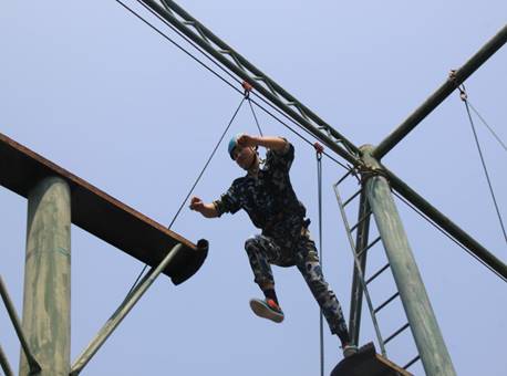 高空項(xiàng)目,離地5米,站在高柱上,走在吊橋上,行在斷木上,不害怕的是吹牛,我們確實(shí)有猶豫、有緊張、有躑躅、還有淚水,但唯一沒(méi)有的是退縮,教練說(shuō),你們不錯(cuò),沒(méi)有一個(gè)人退出!!