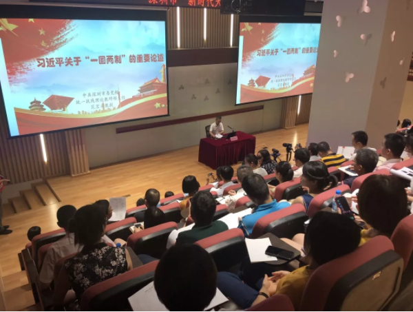 深圳市委黨校、統(tǒng)一戰(zhàn)線理論教研部主任范宏云教授圍繞“習近平總書記關于‘一國兩制’的重要論述”主題進行授課,以“一國兩制”事業(yè)取得舉世公認的成功,港澳經(jīng)濟得到穩(wěn)定增長為出發(fā)點,深入淺出地闡釋了習近平總書記關于堅持黨對一切工作的領導,堅持“一國兩制”和推進祖國統(tǒng)一的重要論述。