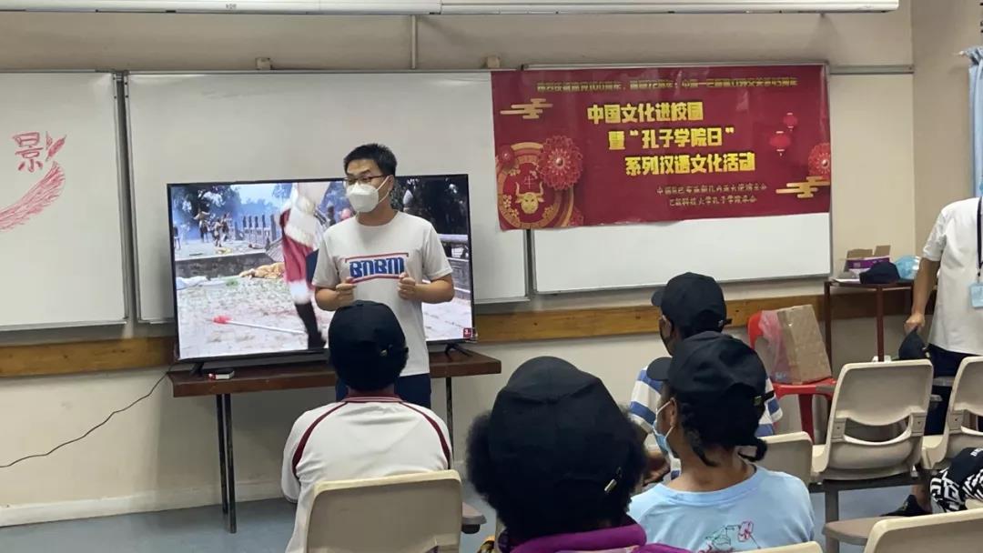 在中國(guó)和巴新建交45周年之際,為促進(jìn)兩國(guó)人文交流,10月13日-15日,中建投巴新公司與巴新科技大學(xué)孔子學(xué)院共同舉辦了中國(guó)文化進(jìn)校園系列活動(dòng)—中國(guó)電影周。
