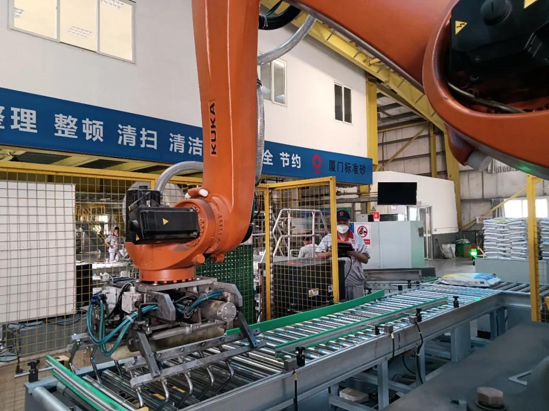 2020年,公司經(jīng)過前面幾年對舊設(shè)備的改造,生產(chǎn)自動化程度得到很大改善,但產(chǎn)品裝車出貨還完全依靠人力,相應(yīng)崗位存在勞動強(qiáng)度大、工作時間長。為改善這一狀況,公司決定在生產(chǎn)線尾端引進(jìn)全自動裝車機(jī)與跨運(yùn)車來解決成品自動裝車與發(fā)貨問題。這一方案將大大提升成品裝車效率,同時也降低工人勞動強(qiáng)度。改造期間,他擔(dān)任現(xiàn)場負(fù)責(zé)人,安排員工協(xié)助安裝,配合廠家調(diào)試,每天梳理工作計劃與實施進(jìn)度,按時向領(lǐng)導(dǎo)匯報。由于產(chǎn)品軟性包裝,貨柜內(nèi)部高度也受限,實際裝車過程中易出現(xiàn)部分倒塌,影響后續(xù)裝包,他們和設(shè)備廠家探討了十幾種方案,最終在大家的共同努力下解決了這一問題。