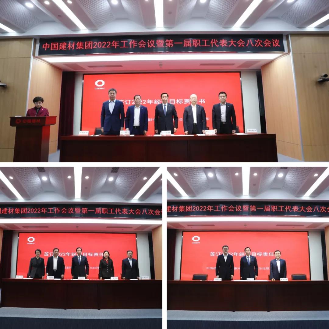 會上,李新華代表集團(tuán)與二級公司負(fù)責(zé)人逐一簽署了2022年考核責(zé)任書。中聯(lián)水泥、南方水泥、寧夏建材、北新建材、中國巨石、中材科技、中材國際、中國建材總院、凱盛科技、財務(wù)公司10家單位作現(xiàn)場和視頻發(fā)言,27家企業(yè)作書面交流。本次工作會同時也是集團(tuán)第一屆職工代表大會八次會議,代表們在認(rèn)真審議后通過了集團(tuán)工作報告。