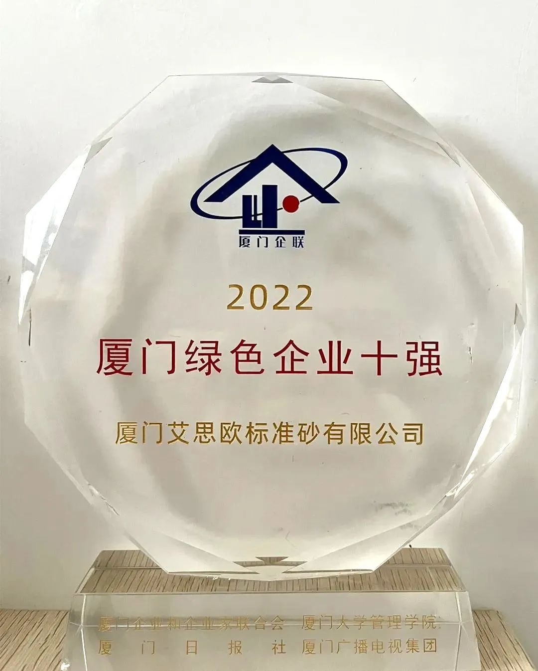 由廈門企業(yè)和企業(yè)家聯(lián)合會、廈門日報社、廈門廣電集團(tuán)聯(lián)合主辦,各行業(yè)協(xié)會協(xié)辦評選的“2022廈門綠色企業(yè)十強(qiáng)”揭曉,公司所屬廈門標(biāo)準(zhǔn)砂榮獲“2022廈門綠色企業(yè)十強(qiáng)”稱號。