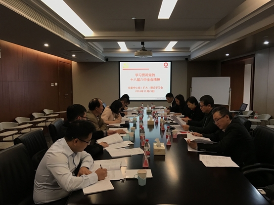 2016年11月25日,公司黨委召開中心組(擴大)理論學(xué)習(xí)會,集中學(xué)習(xí)《張毅同志在全國國有企業(yè)黨的建設(shè)工作會議精神學(xué)習(xí)傳達會上的講話》及十八屆六中全會精神。學(xué)習(xí)會由公司黨委書記、常務(wù)副總裁文敏主持,黨委理論學(xué)習(xí)中心組全體成員、各黨支部書記參加了學(xué)習(xí)會。